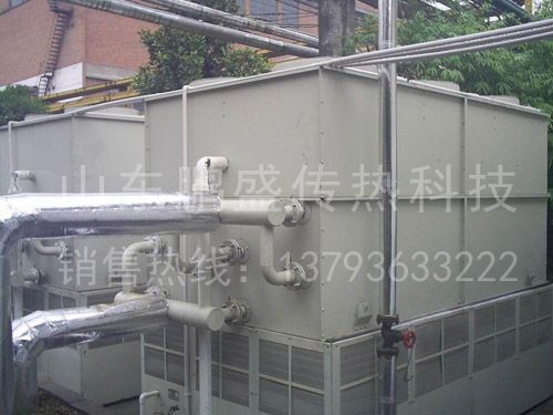 1、閉式冷卻塔實際上是一種蒸發式冷卻塔,冷卻器和濕式冷卻塔的組合,它是臥式的蒸發式冷卻塔,工藝流體在管內流過,空氣 在管外流過,兩者互不接觸。閉式冷卻塔是傳統冷卻塔的一種變形和發展。塔底蓄水池內的水由循環泵抽取后,送往管外均勻地噴淋下來。與工藝式流體熱水或制冷劑和管外空氣并不接觸,成為一種閉式冷卻塔,通過噴淋水增強傳熱傳質的效果。